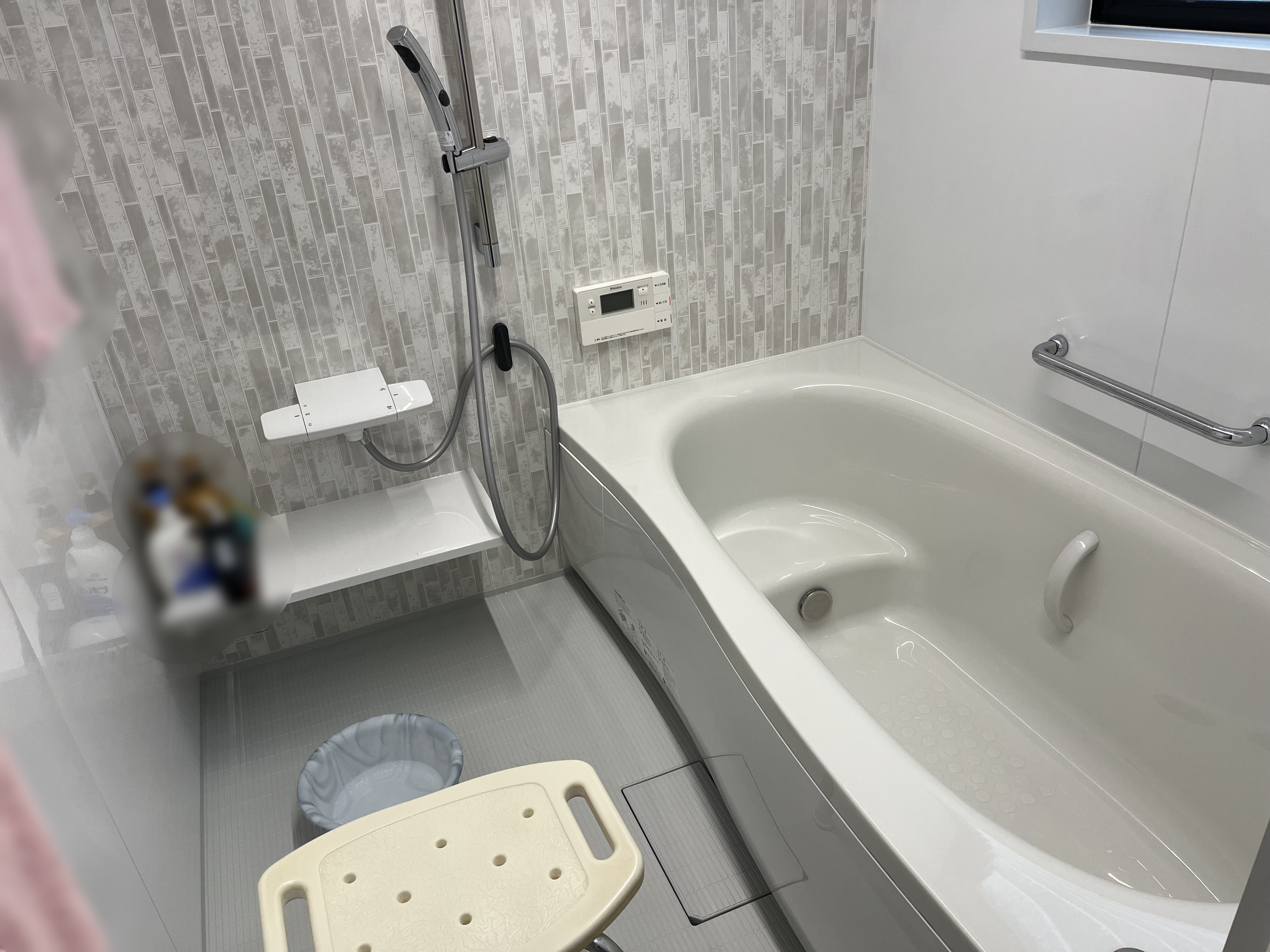①床・壁・天井を新しく張り替えています。 ②システムキッチンを搬入しています。お部屋の雰囲気に合った素敵な一品です。 ③お客様のご要望で床下収納も設置しています。 ④まるでモデルルームのような仕上がりになりました。 ⑤お風呂場も壁・床・天井を新しく張り替え、ユニットバスを設置しています。 ユニットバスは手すり・段差付きで小さなお子様・高齢の方でも安心して使うことができます。